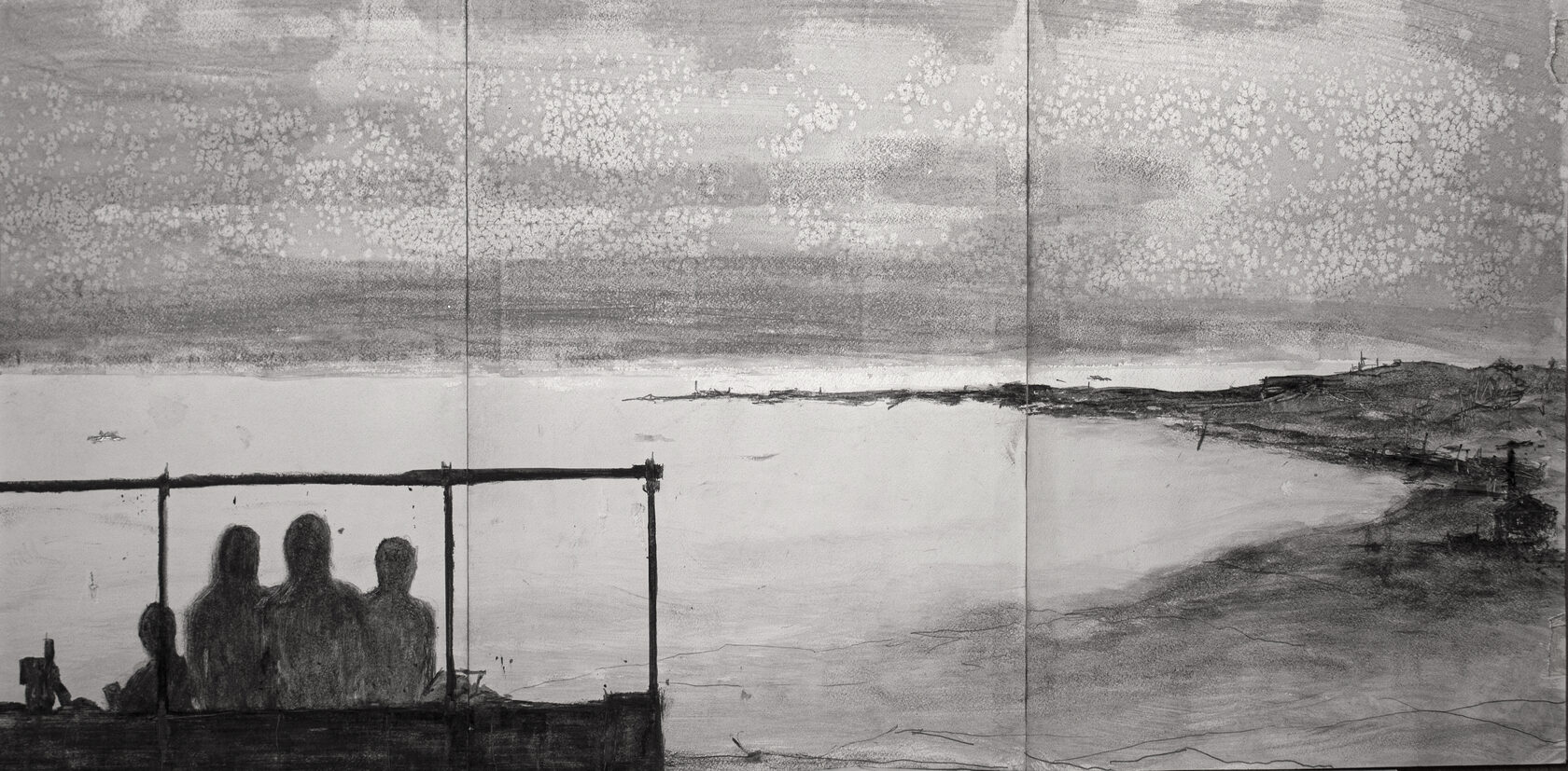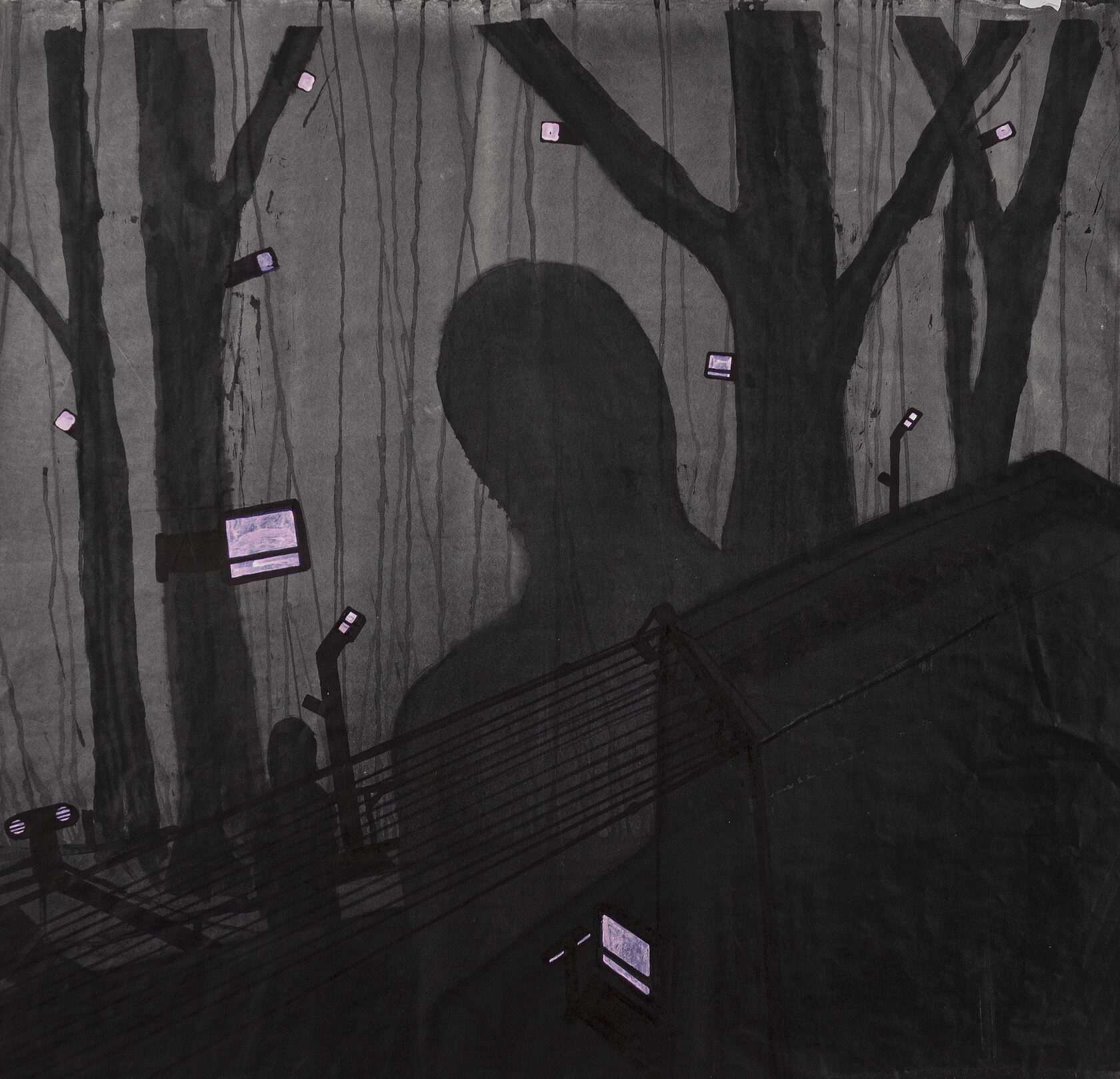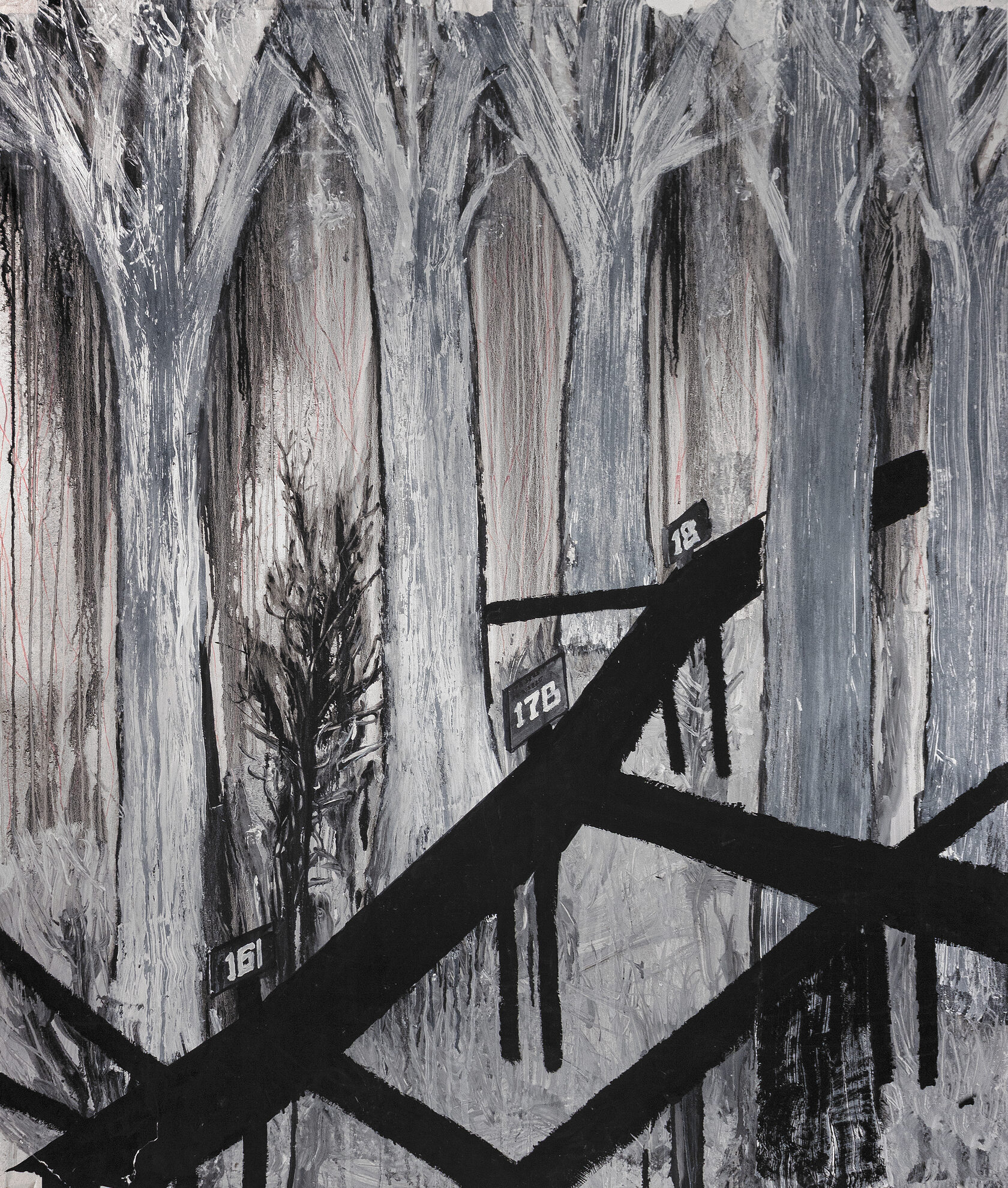 acrylic, wax crayons, pencil, paper ▬ 224x102,5cm ▬ 2020